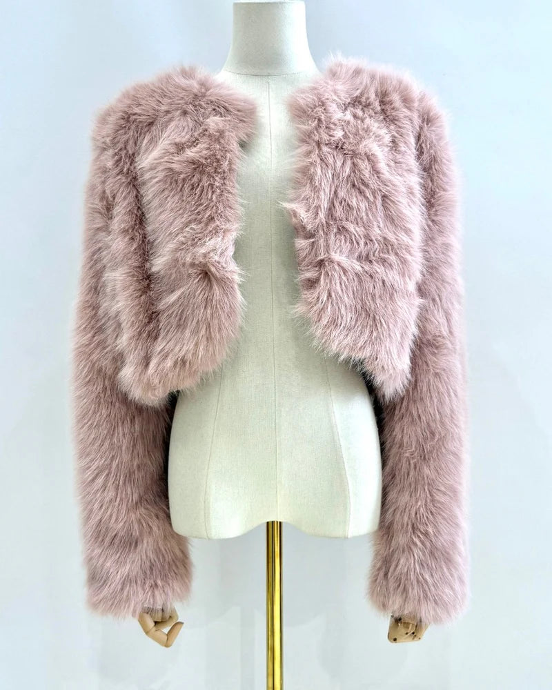 Tu aliado elegante para eventos de temporada. El Bolero de Pelo aporta calidez ligera y un acabado de lujo que eleva instantáneamente vestidos de fiesta, tops satinados o camisas. Te lo pones y el look pasa de “bien” a “wow” sin esfuerzo.
