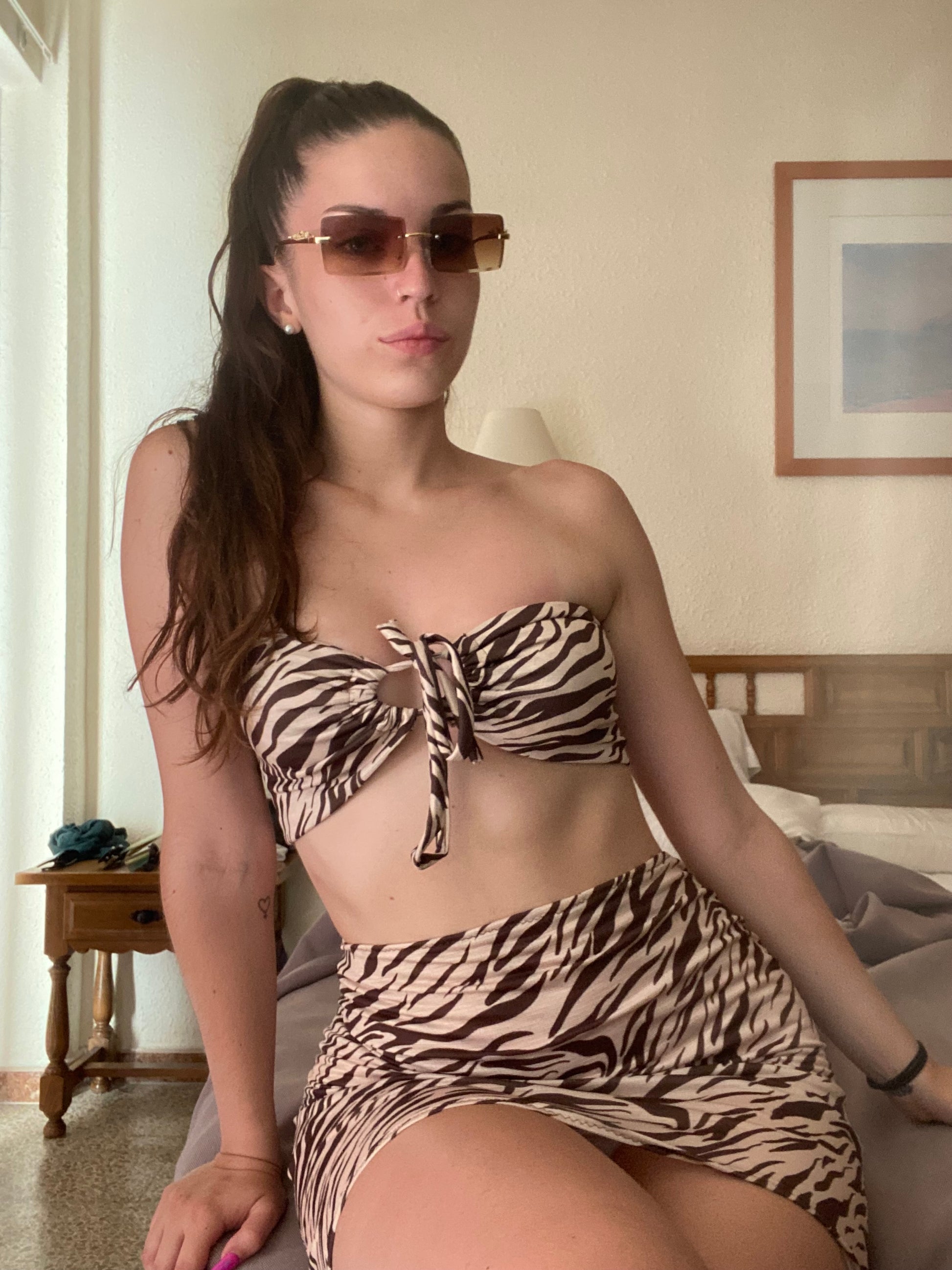 Erhältlich mit beigem und braunem Zebradruck.