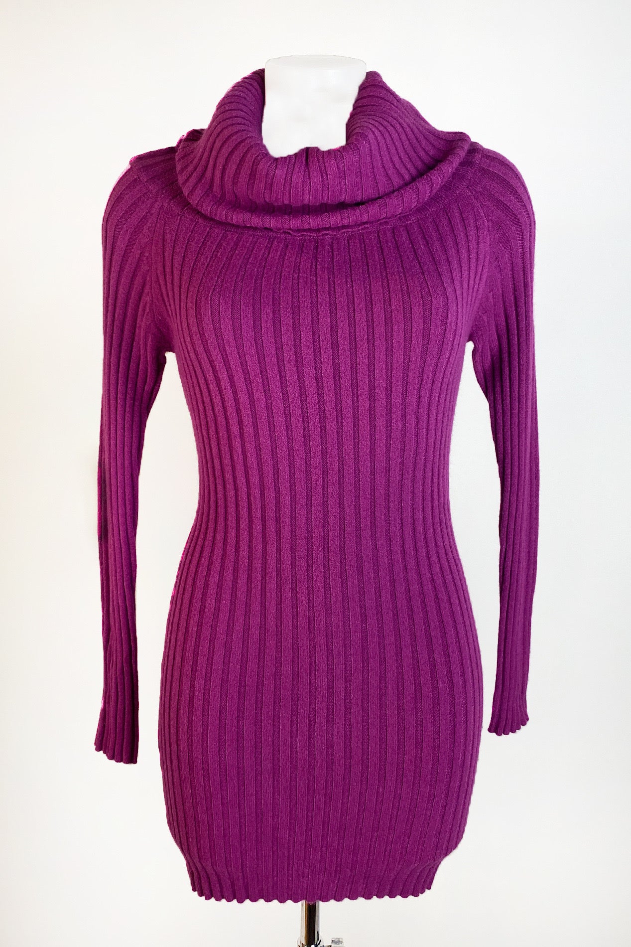 Vestido de canalé de manga larga con cuello vuelto.